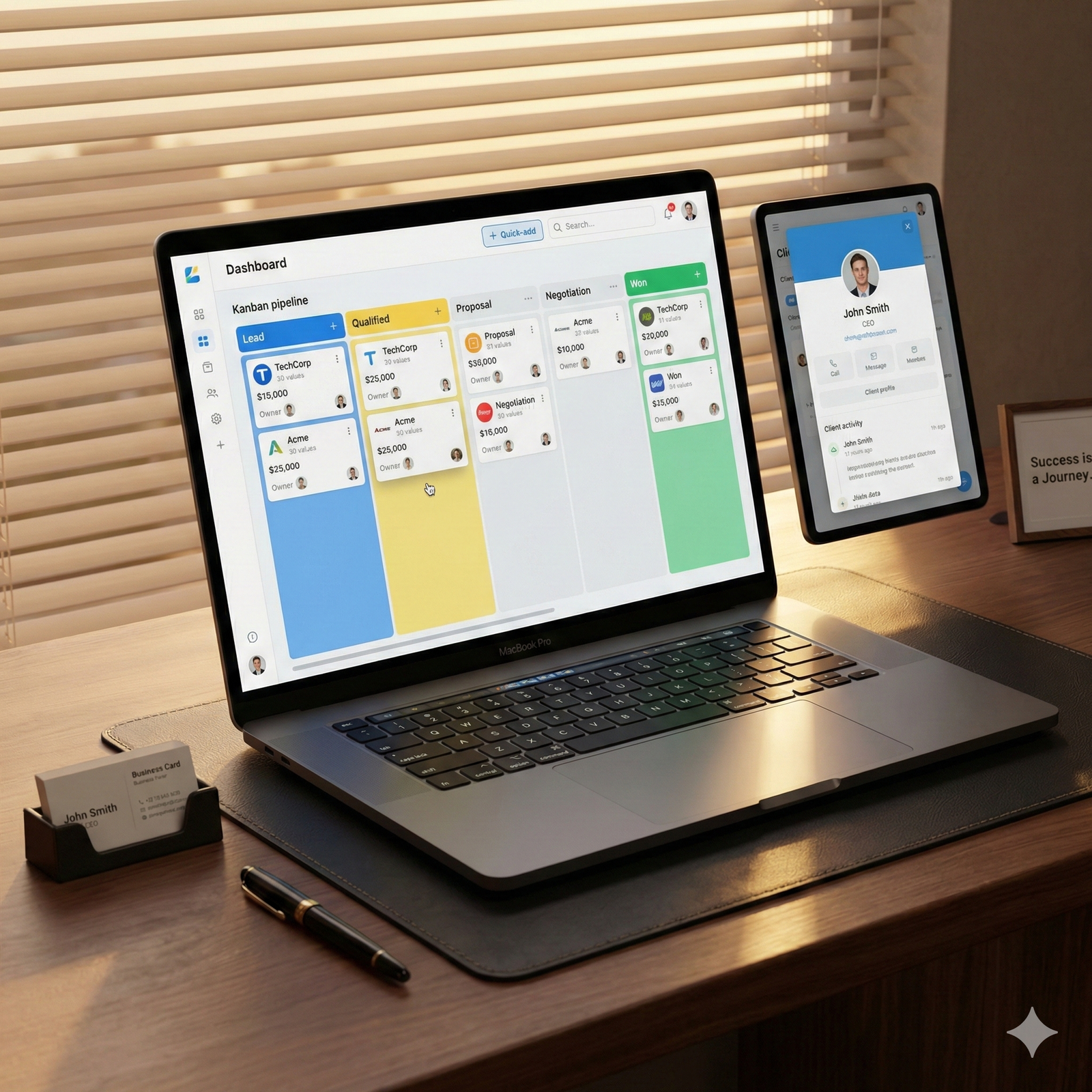 > Pipeline commercial visuel (Kanban)